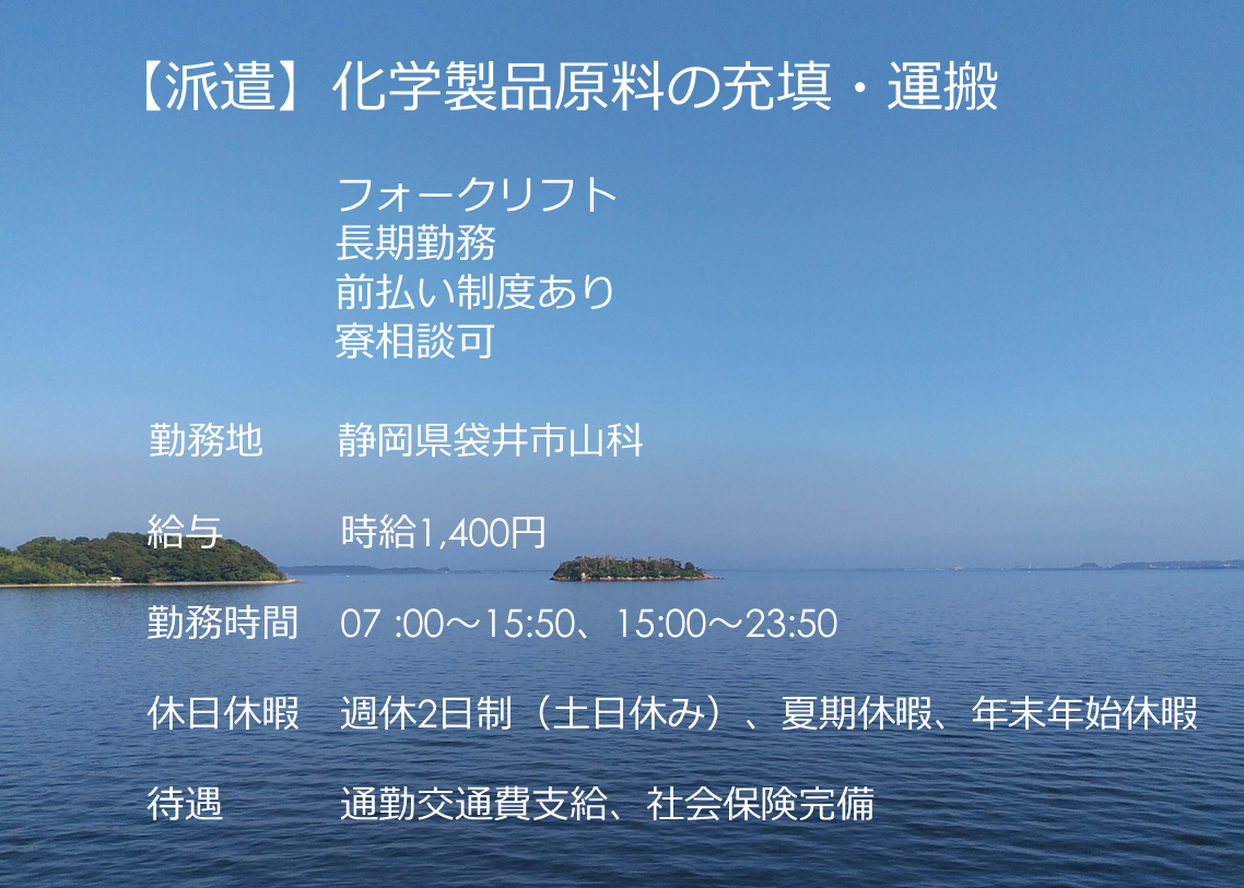 ④募集職種 【派遣】化学製品原料の充填・運搬及び付帯する業務